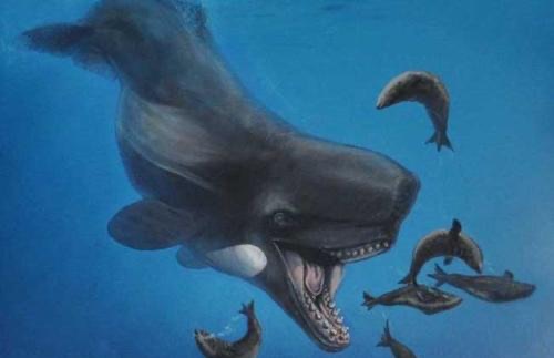 梅尔维尔鲸是鲸鱼的一种,利维坦鲸属中最大的物种,一种在南美洲发现的一种中新世时期的已灭绝的齿鲸,生活在距今1300万年前。梅尔维尔鲸是以其他鲸鱼为食的海洋巨兽,拥有巨大的牙齿足以咬碎一切的生物,其体型与现在的抹香鲸相似,在 18 米左右。
