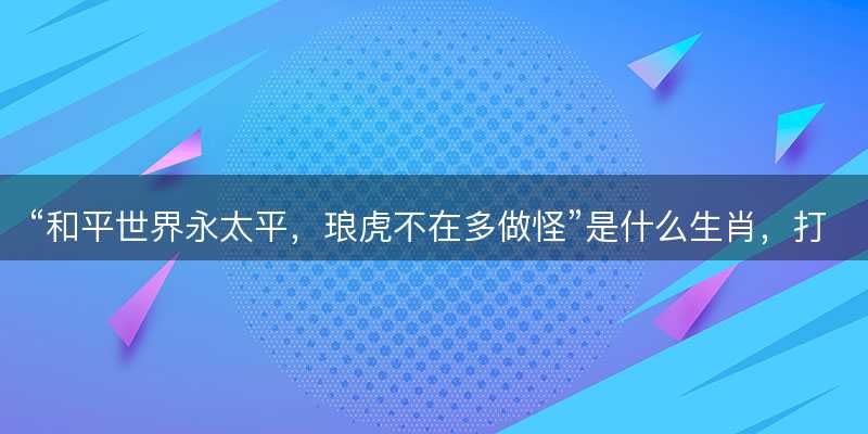 “和平世界永太平,琅虎不在多做怪”成语解释1,需要指出的是,“和平世界永太平,琅虎不在多做怪”其实不算是一个传统意义上的成语,而更像是一句融合了寓意和隐喻的民间俗语了。不过,大家可以尝试从这里中提取出与生肖相关的元素,并进行创意性的小编解读。