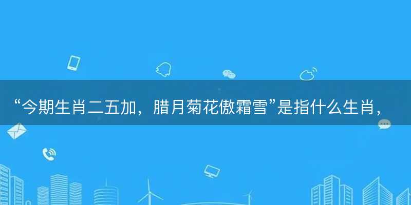 “今期生肖二五加,腊月菊花傲霜雪”的解读1,“今期生肖二五加,腊月菊花傲霜雪”是一个富有创意和文学色彩的谜语或诗句了。大家将尝试从生肖的角度出发,小编解读出与这一诗句意境相契合的12生肖,并结合、和,使其更具准确性和可读性。