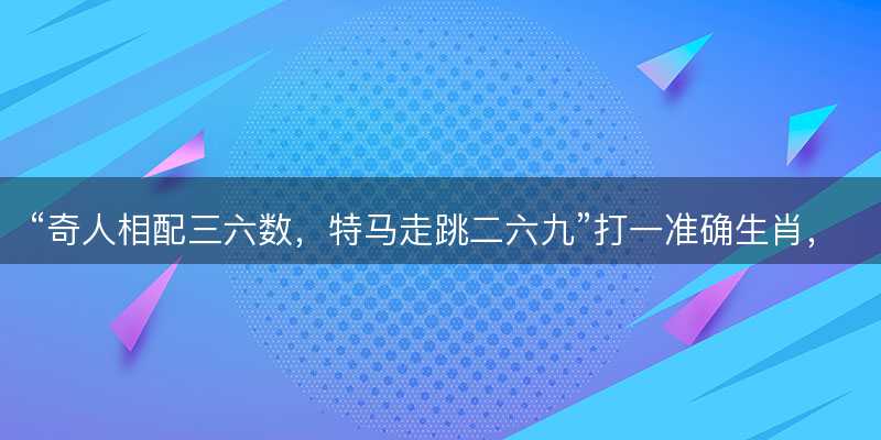 “奇人相配三六数,特马走跳二六九”的生肖寓意与智慧小编解读1,“奇人相配三六数,特马走跳二六九”更像是一句富有神秘色彩和隐喻意味的民间俗语或谜语了。不过,大家可以尝试从这里中提炼出生肖寓意,并结合、等进行详细解读。