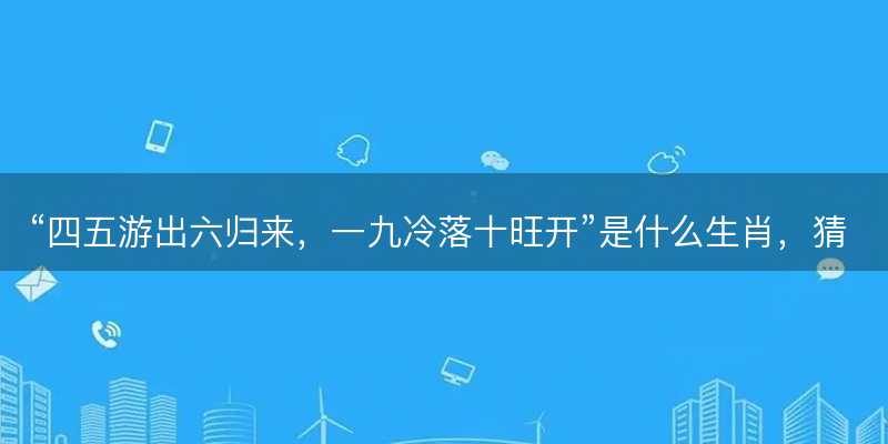 “四五游出六归来,一九冷落十旺开”成语解释1,“四五游出六归来,一九冷落十旺开”并成语解释意义上的成语,而更像是一种谜语或特定语境下的表达了。尽管这样,小编想说的是大家可以尝试将其与生肖相结合了。