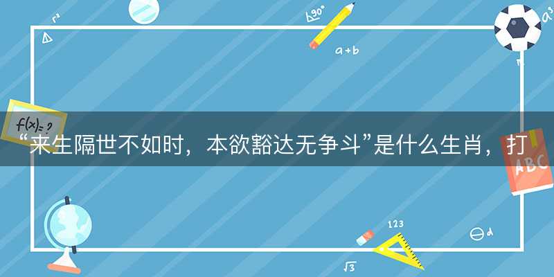 “来生隔世不如时,本欲豁达无争斗”1,“来生隔世不如时,本欲豁达无争斗”其实不算是一个传统意义上严格定义的成语,而更像是一句蕴含哲理的诗句或格言了。不过,大家仍可以从中提炼出深刻的内涵,并将其与生肖文化相结合,进行一番富有创意的小编解读。