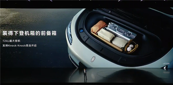 纯电版提供124升容积的前备箱,支持车外双击开启,而车内后排拥有超过1米的腿部空间,靠背最大支持32度调节,提高长途出行的舒适性。