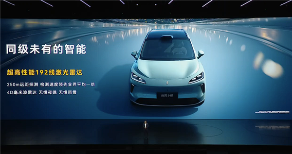 相较于同级竞品,尚界H5最大的杀手锏莫过于智能化,将配备华为192线激光雷达、4D毫米波雷达,支持华为ADS 4.0辅助驾驶。