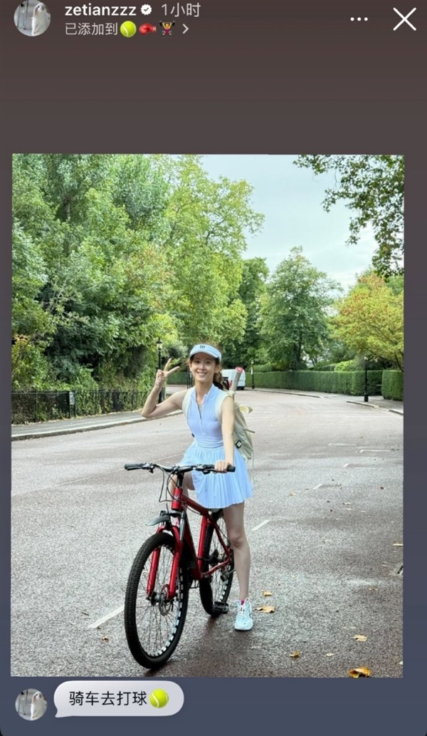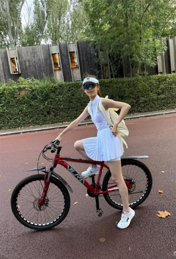 9月2日消息,据媒体报道,今日章泽天在社交媒体晒出穿网球服骑单车照片,少女感满满,网友直呼“白到发光”。