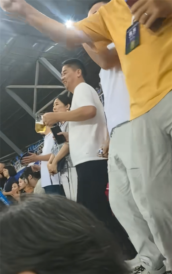 根据现场球迷晒出的视频,京东集团创始人刘强东手捧啤酒现身比赛现场,为宿迁队加油。