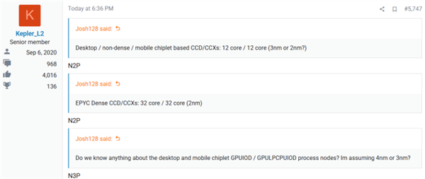 根据Kepler_L2最新透露,AMD下一代锐龙CPU将采用台积电N2P“2nm”工艺技术用于CCD(计算芯片),而IOD(输入/输出芯片)将采用台积电的N3P“3nm”工艺技术。