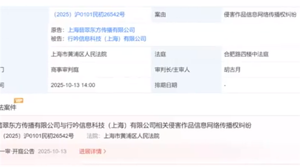 9月3日消息,近日,小红书运营方行吟信息科技(上海)有限公司被TVB旗下的上海翡翠东方传播有限公司起诉,案号为(2025)沪0101民初26542号,案由是侵害作品信息网络传播权纠纷。