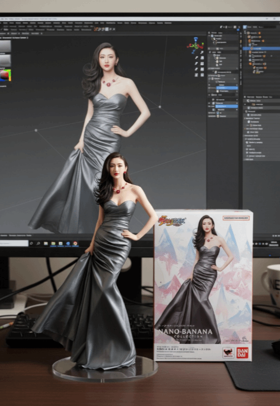 有网友通过使用Nano Banan将插画图之间变成3D手办AI图,手办以及背景场景都十分逼真且精细。