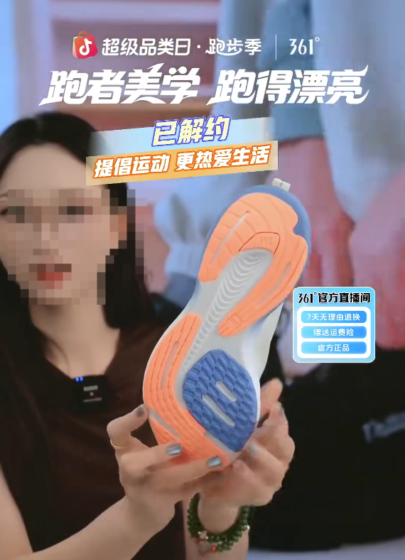 昨日在361度官方旗舰店的直播间,正在带货的主播身前放着一张纸,其中写道:“361°与‘最快女护士’马拉松跑者已解约。”