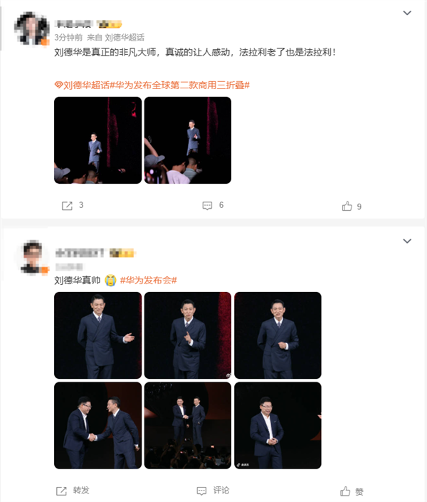 而刘德华一上台,现场就掌声不断,刘德华现场的照片也在微博刷屏,数码科技圈的人都成了刘德华的“狂热粉丝”。