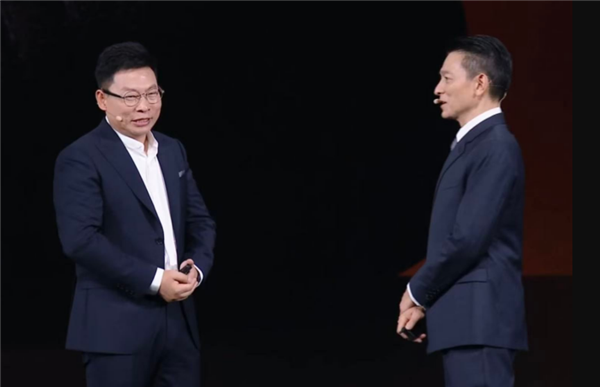9月4日消息,9月4日,华为MateXTs非凡大师品牌大使刘德华现身华为发布会,与余承东同框互动。