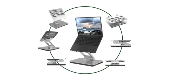 同时,联想推出了业界首款智能多向笔记本电脑支架概念产品——联想灵动AI底座。它创新的集成了摄像头、麦克风和扬声器,提供自动面部跟踪、语音控制和人体工程学健康功能,它还包括一个AI戒指,以实现手势控制支架的旋转。