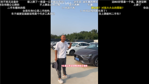 根据专做库存车的车商金涛介绍,目前一台原价 998 的秦 L,包牌包税落地只需要 6.68 万,原价 5.79 万的手动挡 MG5,包牌包税包交强险只要 3.98 万,满屏 “想买” 的弹幕。