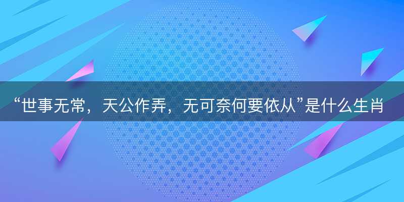 “世事无常,天公作弄,无可奈何要依从”的生肖趣谈与文化小编解读1,“世事无常,天公作弄,无可奈何要依从”其实不算是一个传统意义上的成语,相反一句富有哲理和人生感悟的语句了。为了使其更具可读性和趣味性,大家尝试从生肖文化的角度,小编解读出与这里相契合的12生肖,让家人们更好地理解和欣赏这里的深层含义了。