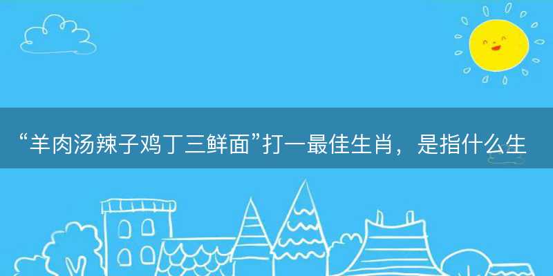 根据羊肉汤辣子鸡丁三鲜面猜一生肖,最佳答案为"羊"。词语解答解释落实如下:羊肉汤直接关联"羊";辣子鸡丁谐音"鸡",但属相代表仍以主料"羊"为核心;三鲜面虽有多种食材,但整体谜底以突出"羊"为准,故生肖为羊。