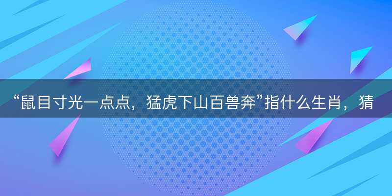 “鼠目寸光一点点,猛虎下山百兽奔”的解读与生活智慧“鼠目寸光一点点,猛虎下山百兽奔”这句富有哲理的话语巧妙地融合了生肖元素,寓意深远了。它以一种形象生动的方式,描绘了不同生肖的特性与人生智慧了。2,大家将从12生肖的角度进行详细解读,让家人们更好地理解和欣赏这一话语了。