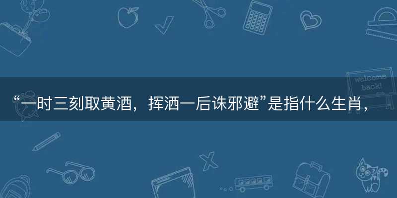 “一时三刻取黄酒,挥洒一后诛邪避”成语解释在探讨“一时三刻取黄酒,挥洒一后诛邪避”这一表述时,大家首先要明确,这其实不算是一个传统意义上的成语,而更像是一句融合了时间、物品与动作的神秘谚语了。尽管这样,小编想说的是通过与小编解读,大家可以将其与生肖文化相结合,赋予其更加丰富的内涵与趣味了。