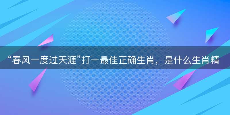 请问根据谜语“春风一度过天涯”打一最佳正确生肖是什么?请提供精选解析释义解释,并落实到具体生肖答案,帮助理解其文化内涵和谜语逻辑。