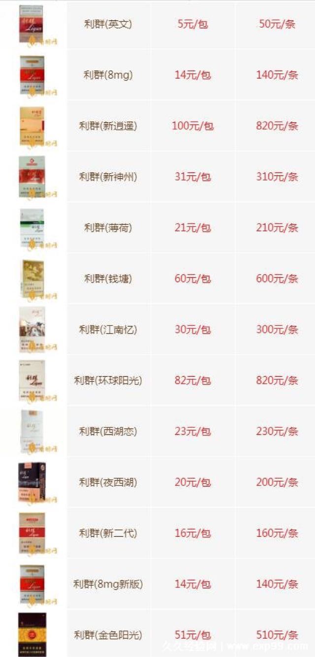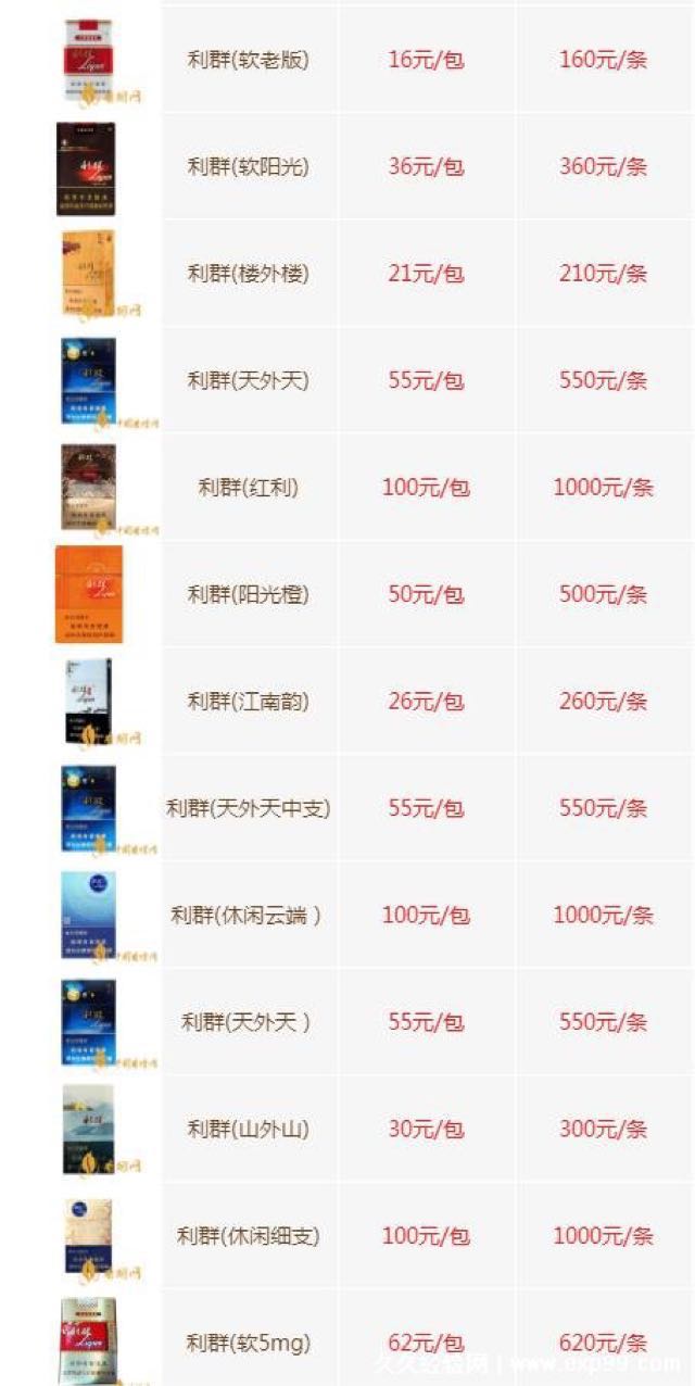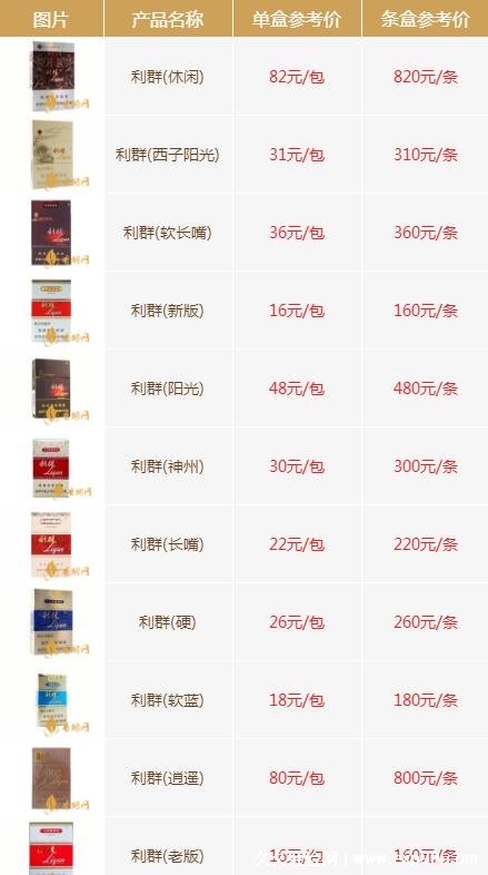 上图就有利群香烟价格,它有利群(休闲)、利群(西子阳光)、利群(软长嘴)、利群(新版)、利群(阳光)、利群(神州)、利群(长嘴)、利群(硬)多种,我们可以看到它的价格其实有高有低,便宜一点的十几元或者二十几元就可以买到的。【趣元素】#安逸花背景#