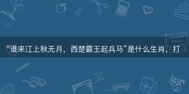 “谁来江上秋无月,西楚霸王起兵马”意象解答和落实1,“谁来江上秋无月,西楚霸王起兵马”其实不算是一个传统意义上的成语,相反两句富有诗意的描述,蕴含着丰富的历史典故和文化内涵了。尽管这样,小编想说的是大家将尝试从这两句诗中提炼出核心元素,并与12生肖相联系,通过小编解读这些生肖所代表的性格特征或常见情境,来展现这两句诗的深层含义了。同时小编想强调的是大家会结合了。
