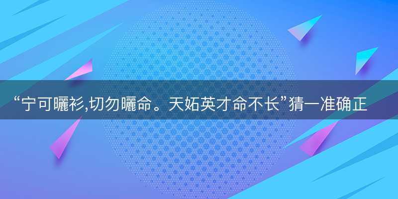 “宁可曬衫,切勿曬命了。天妬英才命不长”成语解释1,“宁可曬衫,切勿曬命了。天妬英才命不长”其实不算是一个传统意义上的成语,相反一句融合了生活智慧与人生哲理的谚语了。尽管它并不直接指向某个生肖,大家可以小编通过对其寓意的小编解读,尝试与生肖产生联系,使其更具可读性和深度了。