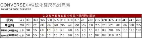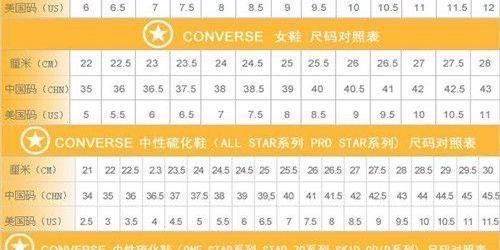 匡威的鞋码对照表