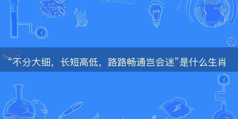 “不分大细,长短高低,路路畅通岂会迷”——生肖寓意与人生智慧“不分大细,长短高低,路路畅通岂会迷”,这句成语如同一盏明灯,照亮了前行的道路,告诉大家无论面对何种困难与挑战,只要保持一颗平和、开放的心态,就能找到通往成功的道路了。假如要从生肖的角度来小编解读,大家可以将其与鼠、蛇、马12生肖联系起来,通过的融入,揭示其背后的深层含义了。