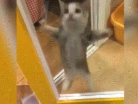 可爱小猫之所以如此雀跃是看到主人回来了挥舞着双爪,蹦跳起来表示欢迎,给人一种非常欢快的感觉