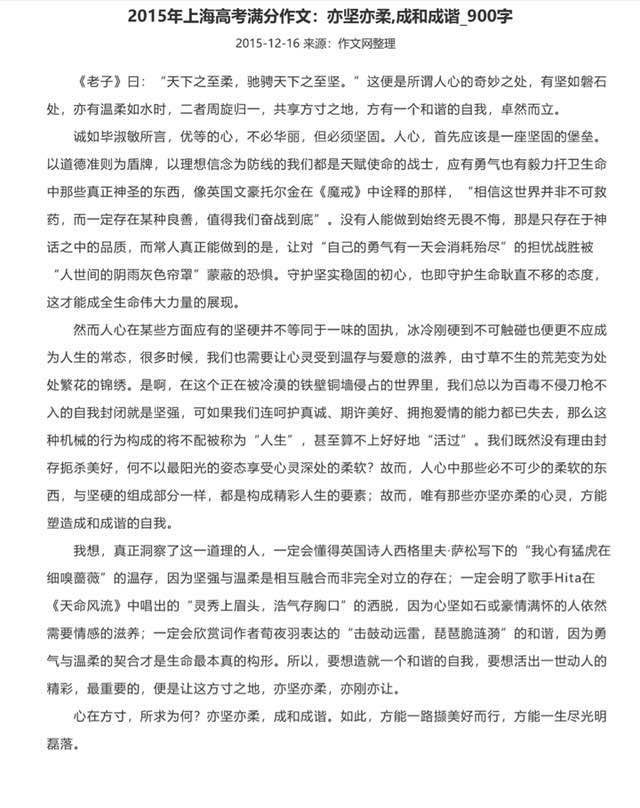 这篇《亦坚亦柔,成和成谐》也是一篇议论文,首段借用老子的话引出文章主旨——人心坚柔周旋归一,共享方寸之地,方有一个和谐的自我,卓然而立,文章首段富有哲理的同时又富有文采,语言简单却有力,仿佛是名篇著作的开场。#欧洲杯每几年一次 与世界杯一样都是4年一届#