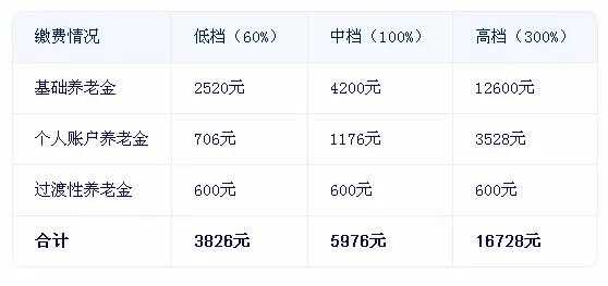 这就是组成的结构,但是很多灵活就业缴费档位不同,退休金额是完全不同的,一般分为60%档位,100%档位、300%档位。例如:按照广州2024年社平工资12000元为例