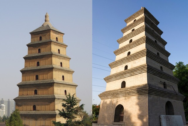 大雁塔位于吉安。据说唐朝的玄奘大师曾在寺庙里建了一座宝塔,用来存放他所取回的经文。这座塔又高又直,已经有1300多年的历史了。大雁塔也成为西安古城的独特象征。