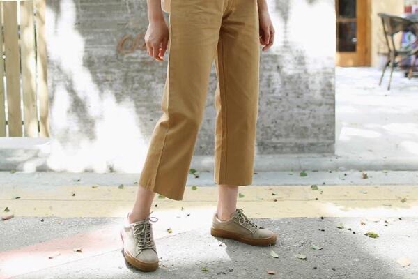 1、卡其裤+白色运动鞋