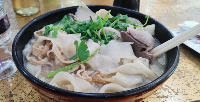 郑州烩面是当地的一大特色,走到郑州的大街小巷都能见到烩面馆,里边的配料十分的丰富,有海带丝、鹌鹑蛋、豆腐丝、香菜、粉条等多种佐料,而汤底是用羊骨、羊肉熬煮5小时以上炖出来的浓白汤汁。浓郁醇厚的汤底裹挟着软滑又筋道的烩面,再加上细嫩酥烂的羊肉片,大口去吃真是舒坦畅快。