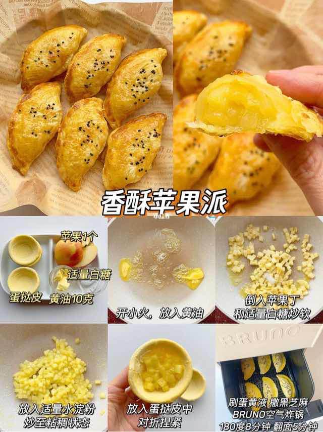 ✨食材:蛋挞皮6只、黄油10克、苹果1个、白糖适量、黑芝麻