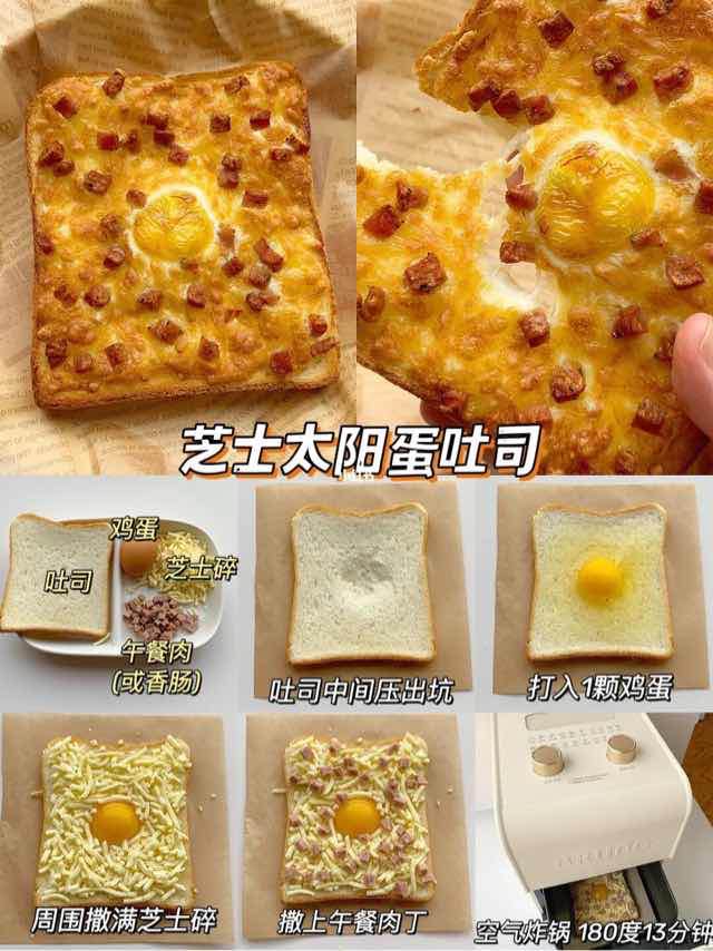 ✨食材:吐司、鸡蛋1个、午餐肉(或香肠)、芝士碎