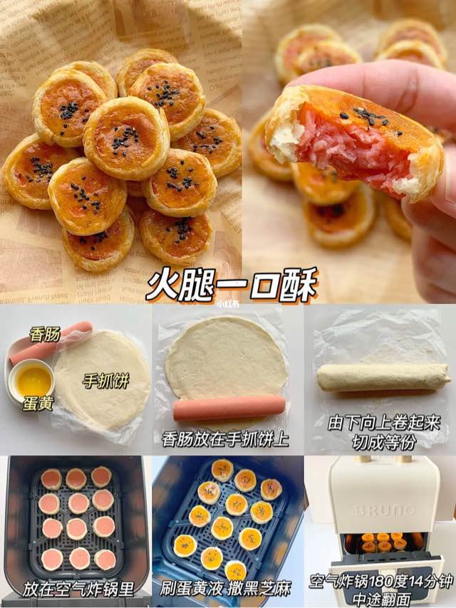 ✨食材:紫薯、牛奶适量、白糖少许、手抓饼2张、蛋黄液、黑芝麻