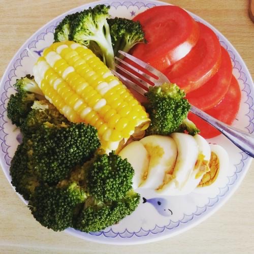 早餐 一个蒸糯玉米,1个荷包蛋,一杯牛奶