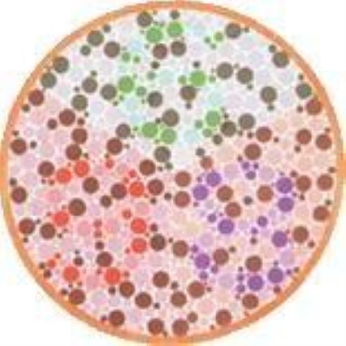右图:正常者及全色弱者大多找不到,红绿色盲者及红绿色弱者容易找到