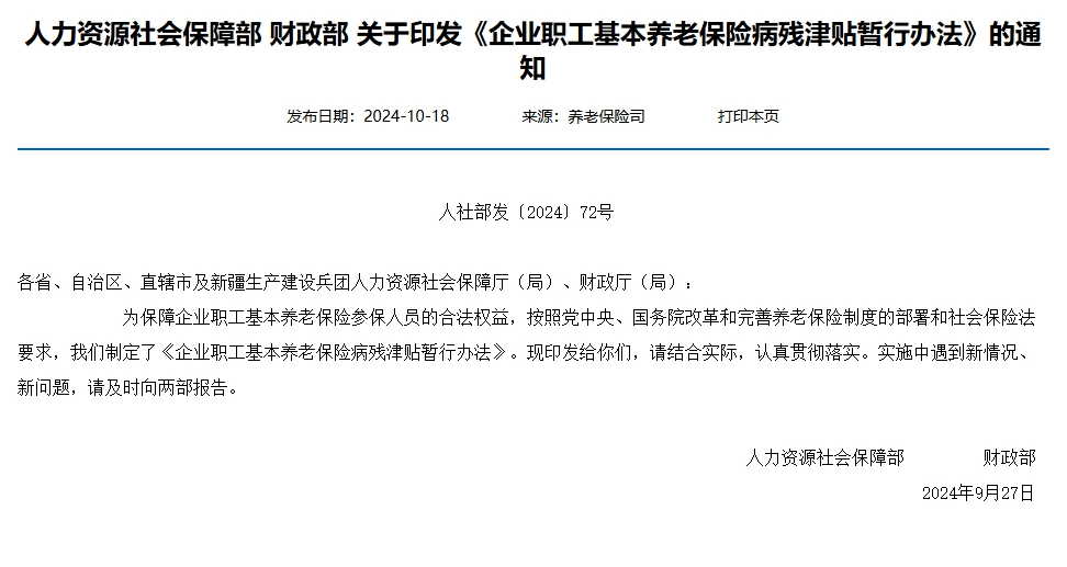 根据人社部和财政部的通知,从2025年开始,执行企业职工基本养老保险病残津贴制度。意味着以前的病退待遇将从2025年开始被病残津贴取代,只要是参保职工,病残津贴的待遇都按照通知的要求按照同一个标准进行计算计发。