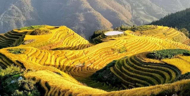 龙脊梯田位于广西龙胜各族自治县和平乡平安村,人们说的龙脊梯田是指平安梯田。其实龙脊梯田主要由平安梯田和金坑梯田组成。梯田随弯就直,随高就低,随长就短,随宽就窄,随坎就坡,地形毫无规律,根本没有一条相同形状的梯田,更没有一条大小相等的梯田。大的不过三二亩,小者仅插一秧稻谷,有鬼斧神工的造型和如诗如画的意境,有“梯田世界之冠”的美誉。【趣元素】#见面吧就现在#