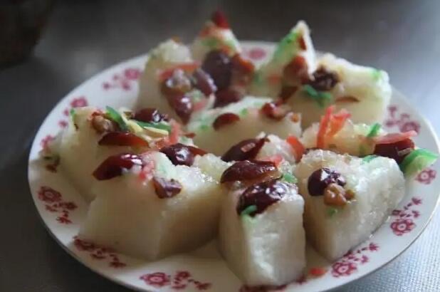 百果蜜糕也是有名的苏式糕点之一,是以糯米粉、核桃仁、松子仁、南瓜子仁和蜜枣等食材为原料制作的,不仅味道香甜可口,而且营养丰富,还具有一定的补脾和胃功效。