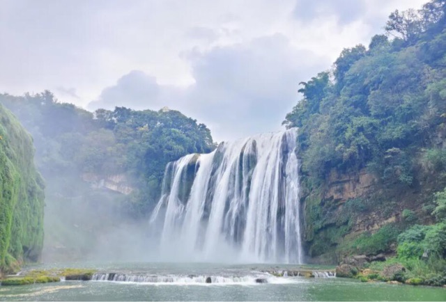 黄果树大瀑布是贵州非常有名的一个景点,这个景点的位置位于贵州省安顺镇的境内,它被誉中华的第一瀑布,大家在去了贵州之后一定会去这个景点去看看,瀑布的流势非常的大,非常的壮观。
