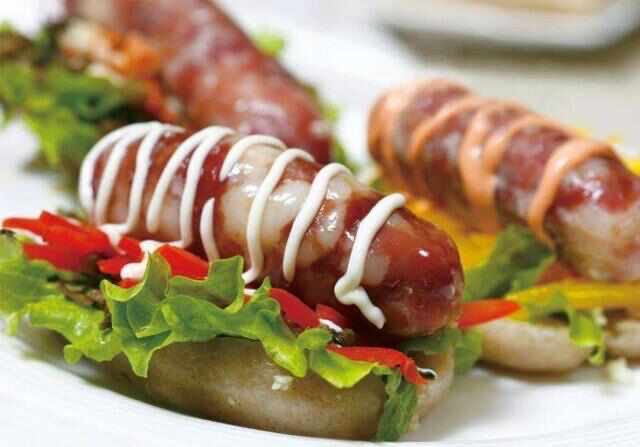 这种小吃是将糯米肠和香肠经过炭烤,再夹上酸菜、小黄瓜、姜片、菜脯蛋等小菜,加上生大蒜和酸菜,烤至香喷喷的糯米肠,再夹住体积较小、烤过的台式香肠,涂上酱油膏等酱料用炭火或炉火烤熟后,加上生大蒜及酸菜就完成了。