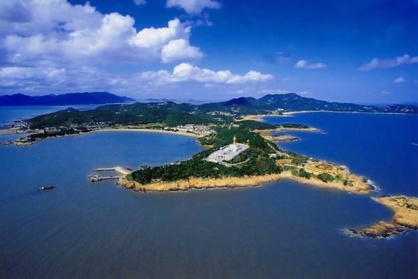 普陀山素有“海天佛国”、“南海圣境”之称,同时也是著名的海岛风景旅游胜地。普陀山位于舟山群岛东部海域,与世界著名渔港沈家门隔海相望,在浙江省舟山岛东侧,属于舟山市。浙江沿海渔民早就来此捕鱼,最早寺庙建于858年,由日僧慧锷主持其事。现有普济寺、法雨寺、盘陀庵、灵石庵等寺庙和潮音洞、梵音洞等名胜。