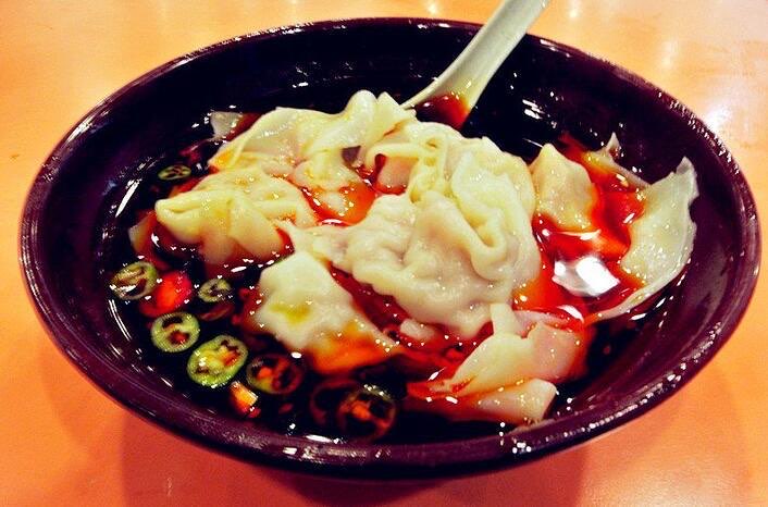 四川成都的抄手,差不多等同于北方的馄饨,似乎皮更厚一些,四边形,放馅儿卷成圆筒再两头沾水捏紧,肉馅儿和混搭馅儿都有,皮薄馅嫩,爽滑鲜香,醇香可口,主要食材有面粉,猪腿肉(猪绞肉)等,口味有红油抄手,清汤抄手,鸡汤抄手等。