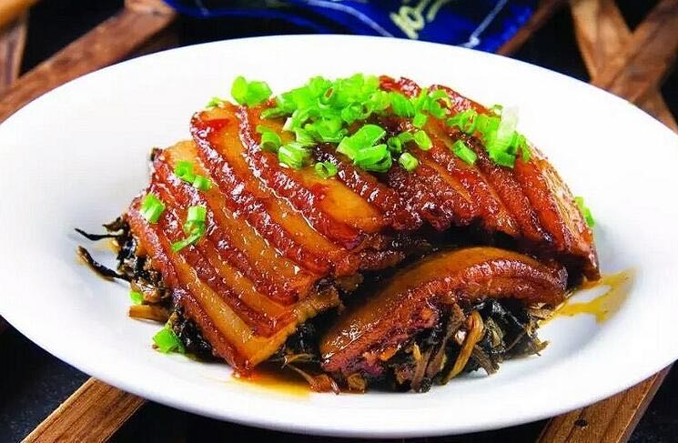 盐菜扣肉是贵州百姓年夜饭中必不可少的一道菜,不管办什么酒席,桌子上也必然会有这道菜。#徐粲金身高#其香气扑鼻四溢,使人馋涎欲滴。其选用的是带皮的五花肉,这样的五花肉肥中带瘦不油不腻,加上储存两年以上的老盐菜上锅蒸制而成。出锅后,看上去是肥肉多瘦肉少,但吃起来毫无油腻,鲜嫩可口。