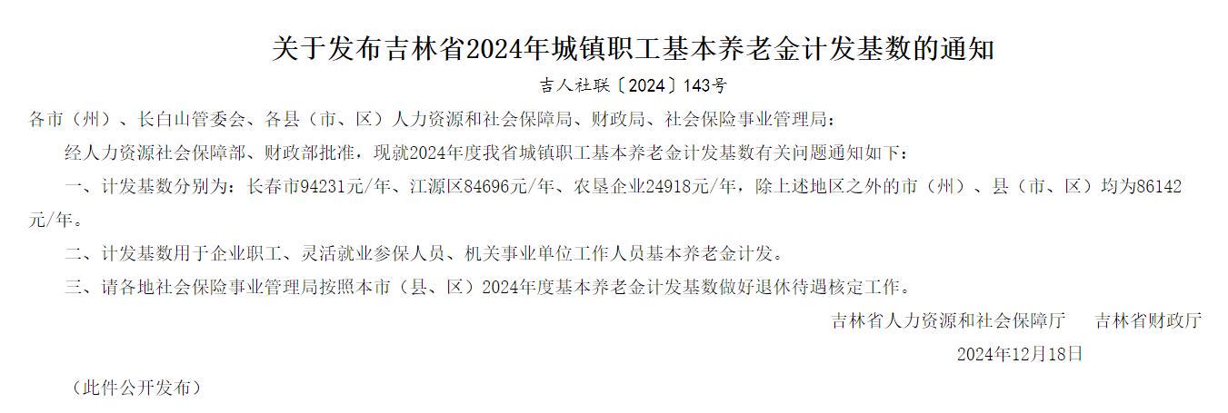 总体来看,吉林是全国31个省市中第16个明确2024年养老金计发基数的地区。