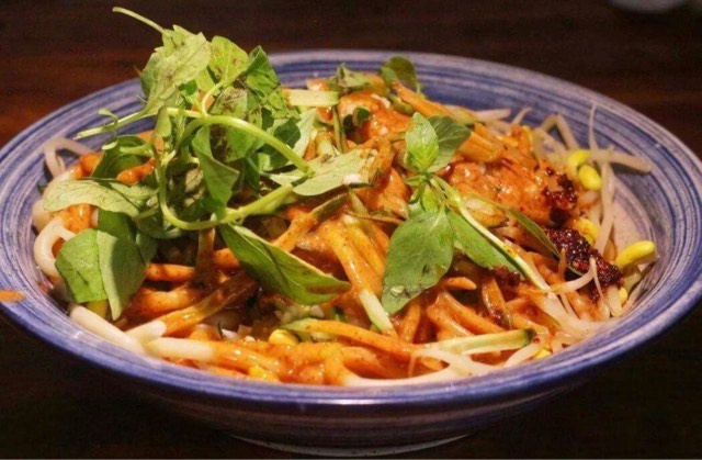 阜阳格拉条是安徽阜阳地区传统名小吃,简单做法就是,用机器压出非常劲道的面条,放在沸水锅里煮沸捞出,过一遍凉水,撒入芹菜末、榨菜末、盐、味精、酱油、芝麻酱、辣椒油,搅拌均匀即可。小编我每次回家都必须要吃的那口味道,面条非常劲道,每根面条上都裹满了酱料,吃完有股香味遗留在口中。