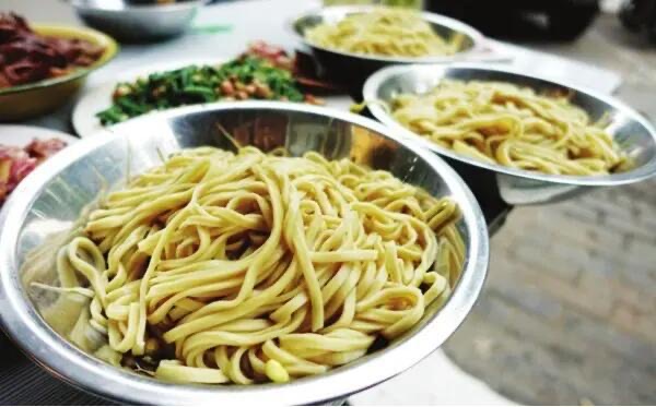 安徽阜阳太和最出名的特色面食估计就是太和板面。太和板面的制作方法十分简单,就是板面和青菜一起煮熟,然后浇上汤底,还可以加些鸡蛋豆皮儿等,简单却非常有味道,这样小小的一碗板面不仅是口中美食,如今也早已成为阜阳的地标美食。